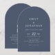 Minimalistischer Text QR Code Dusty Navy Arch Wedd Einladung