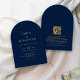 Minimalistischer Text QR Code Navy Gold Arch Weddi Einladung
