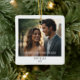 Ein stilvoller, minimaler und romantischer Weihnachtsbaumschmuck für Ihre Ferienzeit im Foto! Diese elegante Dekoration zeigt die Worte "Unser erstes Weihnachtsfest Verlobt" in einem zeitlosen schwarzen Sans-Serif-Schriftart vor einem sauberen und minimalistisch weißen Hintergrund. Foto, Gruß und Name lassen sich einfach für eine persönliche Touch anpassen. Ein einfaches, minimalistisches und zeitgenössisches Weihnachtsdesign, um Ihre Verlobung zu verkünden! Das abgebildete Bild ist nur ein Beispiel und kann durch Ihr eigenes hochgeschätztes Foto ersetzt werden.