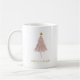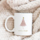 Eine minimalistische Weihnachtsbaum fröhlich + helle Kaffee-Tasse. Diese Tasse ist mit einem einfachen, rosa und goldenen Weihnachtsbaum ausgestattet. Der Text kann mit jedem beliebigen Text Ihrer Wahl angepasst werden.
