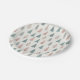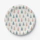 Minimalistische Teller aus Weihnachtspapieren mit handgezeichnet pastellfarbenen Winterbäumen.