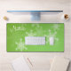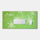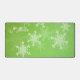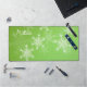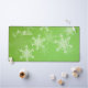 Schönes, modernes und trendiges festliches Muster mit weißen Schneeflocken auf grünem Hintergrund mit individuellem Namen, leicht zu personalisieren. Er ist grün und mit weißen Schneeflocken verziert, die seine Oberfläche bedecken. Die Schneeflocken sind mit feinen Linien detailliert, was einen extravaganten Spitzeneffekt erzeugt. Der Text ist in einem fließenden, kursiven Skript geschrieben, das der Dekoration eine personalisierte Touch verleiht. Der Gesamtstil ist charmant und fröhlich, mit einem klaren Thema für den Urlaub. Perfektes Weihnachtsgeschenk für Ihren Lieben, personalisierbar mit eigenem Text.