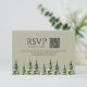 Dies ist eine Minimalistische Winter Snowy Pine Trees QR Code Wedding RSVP Card!