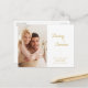 Diese Save the Date Postkarte zeichnet sich durch ein modernes minimalistisches Design aus und ist mit einem einfachen goldenen Schriftzeichen versehen. Die Postkarte bietet 2 Fotos, eines vorne und eines hinten. Benutzerdefinierter Text auf der Rückseite erlaubt es Ihnen, weitere Details zur Hochzeit hinzuzufügen.