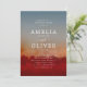 Einfaches und modernes Design für Hochzeitsessen mit abstraktem Hintergrund in Rot, Orange und Rosa. Ideal für Herbst- und Winterhochzeiten.
