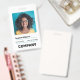 Ein modernes Mitarbeiter-ID-Abzeichen mit minimalem Design, das ein großes Foto zeigt. Das minimalistische Design umfasst den Namen der Mitarbeiter, die Mitarbeiter-ID, das Ablaufdatum und den Firmennamen. Das Mitarbeiter-ID-Foto hat abgerundete Kanten. Alle Informationen können personalisiert sein. Die Rückseite der ID wird absichtlich leer verlassen und kann zum Hinzufügen weiterer Informationen verwendet werden.