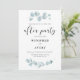 Das Party hört nie auf! Organisieren Sie Ihre Hochzeit nach dem Party mit diesen modernen Einladungen. Eine elegante botanische Designkollektion, ideal für eine schicke und moderne Hochzeit. Diese Suite mit einer feinen, grünen Aquarelltasche ist sowohl einfach als auch klassisch. Vollständig anpassbare Farben: Sie können die Farbe des Textes und des Hintergrunds ganz nach Ihren Wünschen ändern.