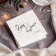 Diese eleganten Servietten mit schwarzer Schrift wurden entworfen, um Ihrer Babydusche mühelos Eleganz zu verleihen. Inspiriert durch moderne Kalligraphie und zeitlose Einfachheit fügen sie Ihrem Tisch eine personalisierte Touch hinzu und behielt den Stil sauber, elegant und unvergesslich für die Gäste.