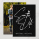 Einfache minimalistische handgeschriebene Save the Date-Karte. Es verfügt über ein Foto auf der Rückseite.
