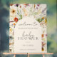 Moderne minimalistische Babydusche Begrüßungsschild mit schlichtem Design, eleganter Kalligraphie und boho Wildblume Aquarell Blumendesign.