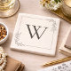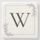 Dieser Untersetzer verfügt über ein sauberes, minimalistisches Design mit einer weichen, neutralen Ästhetik. In der Mitte befindet sich ein großer, eleganter Serifbuchstabe, der ein raffiniertes Monogramm-Look erzeugt. Ein dünner, zarter Rahmen umgibt das Design und fügt Struktur hinzu, ohne die Schlichtheit zu überfordern. In zwei gegenüberliegenden Ecken fügen kleine botanische Linienillustrationen - mit einfachen Blättern und winzigen Blüten - eine sanfte, organische Note hinzu. Diese dezenten floralen Akzente mildern das Gesamtbild und bringen einen Hauch von naturinspiriertem Charme. Insgesamt vereint der Untersetzer modernen Minimalismus mit rustikaler Eleganz und ist somit perfekt für einen anspruchsvollen, neutralen Einrichtungsstil.
