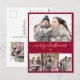 Minimalistisches Burgundy Gold 4 FotoCollage Weihn Postkarte