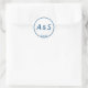 Auf diesem Aufkleber befinden sich die Braut- und Bräutigam-Initialen mit dem Hochzeitstag über Weiß, die in einem klassischen blauen Kreis eingefasst sind. Personalisieren Sie den Text in den Vorlagenfeldern, oder klicken Sie auf Anpassen, um einen Schriftart auszuwählen, den Sie bevorzugen. Ideal zum Versiegeln von Postsendungen oder Begehrensäcken.