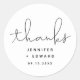 Moderne Gastgeschenk Hochzeit Aufkleber mit einem handgeschriebenen Skript, das "Danke" in Schwarz und Weiß sagt. Passen Sie dieses Produkt an, indem Sie die Namen des Paares und das Datum der Veranstaltung hinzufügen.