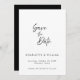 Eine minimalistische Skripthochzeit speichern Sie die Datumskarte. Diese Save the Date-Karte verfügt über einen eleganten Skripttext mit einem minimalen Schwarzweißmotiv. Passen Sie den Text mit allen Details für Ihren besonderen Tag an.