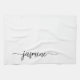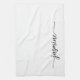 Moderne Elegant saubere Minimalistische Feminine Monogram Name Signature Script Custom Personalisiert Kitchen Handtuch. Dieses Design mit Ihrem Vornamen in einem hübschen handgeschriebenen Stil Swash Schwanz Schriftart Signatur Typografie (oder Kalligrafie) in schwarz auf weißem Hintergrund. Diese sind einfach zu anpassen. Große stilvolle feminine Hauswärmeschenke, auch zum Geburtstag, Muttertag, Hochzeit, Brautparty und Es ist für das Mädchen, das Lieben einzigartige, saubere minimalistische Dinge.