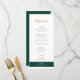 Minimalistisches Emerald Green & Gold Wedding Menu Menükarte