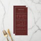 Genießen Sie den Hochzeitsempfang mit den Minimalistischen, feinen, roten und kalten Hochzeitsmenüs, die für ein schlichtes und elegantes Hochzeitsthema konzipiert sind. Diese Menüs mit minimalistischem Fett und moderner Typografie in einem beeindruckenden großen Schriftart zeigen wunderbar die Namen von Braut und Bräutigam, das Hochzeitstag und das Abendessen am Empfang. Das gepflegte, gepflegte Design sorgt für Klarheit und Stil und macht sie zu einer perfekten Ergänzung zu Ihrem minimalistischen Hochzeitsgeschirr. Diese mit hochwertigem Druck gefertigten Menüs bieten lebendige Details und eine glänzende Oberfläche. Lassen Sie sich mit Ihren Abendessen verwöhnen, um ein raffiniertes und unvergessliches Menü für Ihren Hochzeitsempfang zu kreieren!