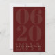 Mit diesem Minimalistischen und kühlen Typ Foto Save the Date, der sich für eine moderne Hochzeit eignet, verkünden Sie Ihren besonderen Tag mit Eleganz. Dieses Design mit einem auffallenden Paar-Foto und einem eleganten Foto-Overlay in einer raffinierten roten Farbe zeigt eine kühne, minimalistische Typografie, die Braut und Bräutigam hervorhebt. Die klaren Linien und die moderne Typografie schaffen ein elegantes, minimales Hochzeitsdesign, das sich ideal für minimalistische Hochzeitsauflagen eignet. Save the Date mit hochwertigem Druck sorgt das für kräftige Farben und scharfe Details. Personalisieren Sie mit Ihren Namen, Hochzeitsdatum und ein geschätztes Foto, um einen zeitlosen Sake zu schaffen, der den Ton für Ihre Feier Set!