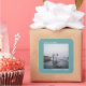 Diese Aufkleber sind perfekt für Hochzeiten danken Ihnen Geschenke oder Favoriten, oder als Ergänzung zu Ihrer Einladung Mailing. Sie zeichnen sich durch ein schlichtes minimalistisches Design aus, mit einem quadratischen Foto auf einem aquamarinen oder türkisfarbenen Hintergrund. Die verlassen gerechtfertigte Beschriftung oben auf dem Foto lautet "Liebe und Dank", während die Namen unten richtig sind - was ihr einen symmetrischen Look verleiht.