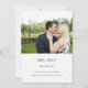 Dieses schicke, schwarz & weiß-moderne Minimalistische Script-Foto Save the Date weist "Save the Date" in einem trendigen schwarzen typografischen Minimallayout auf einem weißen Hintergrund auf der Vorderseite auf, mit der innovativen Drehung, das Wort "das" in der Mitte des Designs in einer diagonalen Schrift Typografie zu haben. Auf der Rückseite der Karte befindet sich das horizontale Foto, das oben von Kante zu Kante verläuft, die Namen in einer schönen handgeschriebenen Schriftzeichen-Typografie, das Hochzeitstermin und der Hochzeitsort.
