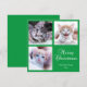 Fügen Sie drei (3) Ihrer eigenen Familienbilder hinzu, um eine quadratische Merry Christmas minimalistisch soliden grünen Hintergrund flache Grußkarte. Sie können den Hintergrund, den Text und die fröhliche Weihnachtsgrafik mit den Farben, die Sie wählen, anpassen. Die Fotos sind niedlich. Fügen Sie Ihre eigenen Bilder hinzu. Auf dieser Kartenversion ist die Rückseite leer, aber Sie können eine personalisierte Textnachricht für Familie und Freunde hinzufügen.