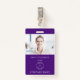 Minimalistisches Foto-ID-Logo Lila. Ein vollständig anpassbares Foto-ID-Abzeichen, das einfach mit Ihrem Foto, Logo und Text personalisiert werden kann. Tauschen Sie Ihr Foto (landschaftsorientiert) durch das Beispielbild und das Firmenlogo aus und personalisieren Sie den Text ganz einfach auf Ihre eigenen Daten. Sie können auch Ihre Rücksendeadresse auf der Rückseite hinzufügen, falls Ihre Karte verloren geht oder wenn Sie es wünschen, diesen Text löschen. Die Stile und die Farbe des Schriftartes können auch über die Option Weitere einstellen geändert werden, ebenso wie die Hintergrundfarbe.