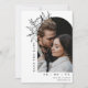 Eine schick-minimalistische Hochzeit speichern Sie das Datum Ankündigung in Ihrem Lieblings-Foto in einem Bogen mit einer schwarzen Linie gezeichnet Blumenstrauß in Weiß piekend hinter. Fügen Sie Ihre Hochzeitswebsite QR Code auf der Rückseite.