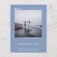 Mit dieser Postkarte können Ihre Gäste ganz einfach auf Ihre Hochzeitseinladung antworten. Das minimalistische Design mit dem Foto auf einem hellbeigen, blauen Hintergrund. Auf der Rückseite haben Ihre Gäste Platz, um ihre Akzeptanz anzuzeigen oder Bedauern zu senden und zu wählen, welches Essen sie mögen möchten.
