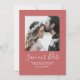 Minimalistisches Foto Ankündigung Datum freihalten mit einem frischen und schlichten quadratischen Foto-Ausschnitt in Rot. Fügen Sie ein Foto und Ihre Hochzeitsdetails zu anpassen. Dünne weiße Streifen schmücken den hinteren Teil der Einladung. Hintergrundfarbe auf der Rückseite der Einladung kann geändert werden, um das Foto zu ergänzen oder Ihre Hochzeitsfarbe hinzuzufügen.