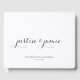 Eine hübsche Schriftzeichen-Holzkohle-Schwarztypografie auf einem personalisierten, weißen Gästebuch, mit einer modernen, einzigartigen Typografie für den modernen Minimalisten. Hochzeitsgast, der ein Sake-Buch signiert, um seine Gäste an der Hochzeitsfeier zu begrüßen, oder ein Brautparty oder eine Verlobungsfeier, um für immer zu sein. Wenn Sie die Farben von Schriftart oder Schriftart ändern möchten, klicken Sie nach der Personalisierung einfach auf "Weiter bearbeiten", wählen Sie Ihren Typ und sehen Sie die Farbpalette auf der rechten Seite, und die Schriftart-Auswahl.