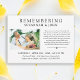 Eleganter und minimalistischer gemeinsamer Tod Einladung zu feiern und zu ehren, die Erinnerung Ihrer Lieben, wie Ihre Mutter und Vater oder Großeltern. Das Gedenken wird in einem eleganten, schwarzen Schriftart über den Namen Ihres Liebsten, der Einladungsworte und einem Foto Ihrer Lieben geschrieben. Fügen Sie die Einladung Formulierung, den Namen Ihrer Lieben und die Details der Feier in eleganten schwarzen Schriftart vor einem weißen Hintergrund.