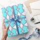 Abstraktes geometrisches Muster mit blauen und weißen Formen. Einfaches und elegantes Packpapier zum Verpacken Ihres besonderen Geschenkes