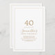 Diese minimalistische Gold 40. Geburtstagseinladung ist perfekt für eine einfache Geburtstagsfeier. Das moderne romantische Design besticht durch klassische Goldtypografie und Weiß, gepaart mit einer rustikalen und eleganten Kalligraphie mit Vintagem handgeschriebenem Stil. Anpassbar in jeder Farbe. Behalt das Design einfach und elegant, wie es ist, oder personalisiere es durch Hinzufügen von eigenen Grafiken und Kunstwerken.