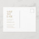 Diese minimalistische Deko-Hochzeit in Gold bewahrt das Datum der Postkarte sowohl eine elegante, schwarze Krawatte formell, als auch ein lässiges, einfaches Design für eine traditionelle oder rustikale Hochzeitsfeier. Das schlichte, neutrale, goldfarbene und weiße Layout mit einzigartiger, klassischer Typografie spricht für minimales Boho oder klassisches Retro-Design und ist somit perfekt für jedes Event-Thema geeignet.