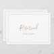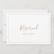 Dieses minimalistische goldene Schild ist perfekt für eine einfache Hochzeit. Die Karte ist zweiseitig (beidseitig gedruckt). Das moderne romantische Design besticht durch klassische Goldtypografie und Weiß, gepaart mit einer rustikalen und eleganten Kalligraphie mit Vintagem handgeschriebenem Stil. Anpassbar in jeder Farbe. Behalt das Design einfach und elegant, wie es ist, oder personalisiere es durch Hinzufügen von eigenen Grafiken und Kunstwerken. Benutzen Sie diese Karten, um Stühle oder Tische bei Ihrer Hochzeitsfeier, Empfang oder jeder Veranstaltung zu reservieren.