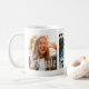 Dieses Design verfügt über ein Graduiertenstudium, für High School oder Uni Senior, ein Multi-Foto Collage drei 3,Abschluss Foto Grid Tasse, ein stilvolles trendiger, einfacher Typografie-Schriftart, ein modernes elegantes typografisches Stil, ein minimalistisches minimalistisches Design, ein modernes, vereinfachendes Design, ein Abschluss Foto, einen Kaffee Abschluss Gastgeschenk