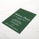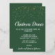 Dieses minimalistisch-moderne grüne Weihnachtsabendessen mit Goldfolie lädt zu einem stilvollen Weihnachts- oder Feiertagessen ein. Das Design zeichnet sich durch elegante reale Goldfolie Confetti mit eleganter weißer Kalligraphie auf festlich grünem Hintergrund aus.