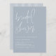 Mit dieser minimalistischen Brautdusche laden wir Sie zu Ihrer Veranstaltung ein. Es verfügt über ein minimalistisches handgeschriebenes Skript mit einfacher Typografie und einem staubigen blauen pinstripe Muster. Personalisieren Sie diese durch Hinzufügen von Namen, Datum, Uhrzeit, Ort und anderen Details. Diese einfache Skriptbridal-Einladung ist auf anderen Cardstock erhältlich.