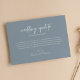 Minimalistische Dusty Blue Wedding Update Downsize Ankündigung. Das Wort 'Hochzeit Update' ist nicht editierbar. Schicken Sie diese Ankündigungskarte, um Ihren Gast zu Ihrer Hochzeit zu entlasten.