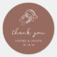 Diese trendigen und dennoch eleganten Braun- oder Brautparty-Aufkleber zeichnen sich durch einen modernen und minimalistischen rustikalen Stil aus, mit weißem, handgeschriebenem Drehbuch, das "danke" sowie klassischem Text. Ein handgezeichnet Paar Hufeisen wird in einer subtilen Illustration präsentiert, um ein aktualisiertes Aussehen für Ihr Land, Western oder Cowboy Thema Hochzeit.