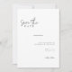 Ein elegantes, schwarz-weißes minimalistisches Design mit einer modernen, Save the Date kalligraphischen Schrift. Einfache Anpassung mit Ihren Wunschdetails, inklusive Ihrem phantastischen Foto auf der Kartenrückseite. Ideal für jeden Hochzeitsort.