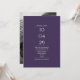 Ein modernes minimalistisches Design mit Ihrem besonderen Datum und Ihre Hochzeitsdetails Set in klassischer, schicke Typografie auf einem lila Hintergrund. Fügen Sie Ihr Lieblings-Foto auf der Rückseite. Entwickelt von Thisisnotme©
