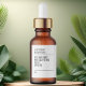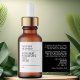 ein schlichtes, minimalistisches Beauty-Label mit weißer Vorderseite und schwarzem Rücken. Enthält Bereiche für Gebrauchsanweisungen, Inhaltsstoffe und Ihre Kontaktdaten.