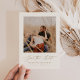 Dieses elegante minimalistische Save the Date zeigt Ihr Foto mit einem dünnen Rahmen, modernem Drehbuch und Details unten. Stellen Sie sicher, dass Sie ein zusätzliches Foto und alle zusätzlichen Details auf der Rückseite hinzufügen.