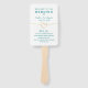 Mit unseren modernen und minimalistisch-weißen und aquamarinen Hochzeitsfans bleibe man stilvoll cool. Diese Ventilatoren, die mit eleganter Kalligraphie und einem zauberhaften goldenen Seil-Herz gestaltet wurden, sind die perfekte Kombination aus Eleganz und Funktionalität. Ideal für Hochzeiten im Freien oder im Sommer, behielt sie Ihren Gästen komfortabel und präsentieren dabei Ihre Zeremonie Details. Personalisieren Sie mit Ihren Hochzeitsinformationen, um einen einzigartigen und eleganten Sake zu schaffen. Ideal für elegante, moderne oder klassische Hochzeiten.