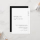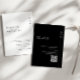 Minimal & modern und klassisch schwarz-weiß Hochzeitscode Einladung mit klaren Linien, elegante Typografie und Hochzeitsdatum vor und auf der Rückseite der Einladung.