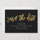 Dieses moderne und dennoch elegante Ankündigung Datum freihalten mit einem schicken schwarzen Hintergrund, dem Gruß "Save the Date" in Imitaten Goldfolie und Ihrer Info in Weiß. Sie können dieses Design noch weiter anpassen, indem Sie ein anderes Foto oder einen zusätzlichen Text auf der Rückseite hinzufügen.