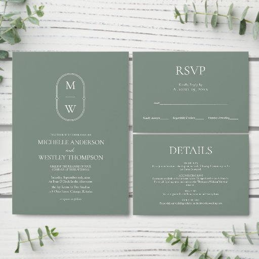 Minimalist Monogram Sage Green & Moss Green WeddinDesignt von Trista S