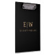 Mit dieser Schwarz-Gold-Minimalistisch-Modernen Monogram-Zwischenablage können Sie Ihren Alltagsaufgaben eine Touch Eleganz hinzufügen. Dieses Clipboard ist mit einem schwarzen Hintergrund und einem fett-goldenen Imitat-Monogramm konzipiert und eignet sich hervorragend für Profis, Lehrer, Schüler und Unternehmer. Egal ob Sie Notizen machen, Leitbesprechungen abhalten oder Checklisten verwalten, diese personalisierte Zwischenablage verbindet Stil mit Funktion. Ein ausgeklügeltes und praktisches Werkzeug für jeden modernen Arbeitsplatz.
